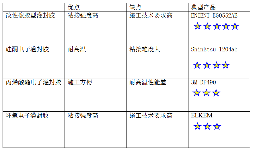 綜上所述,選擇電機(jī)定子灌封膠應(yīng)綜合考慮產(chǎn)品使用環(huán)境、成本和性能要求。在選擇具體品牌時(shí)也需要注意產(chǎn)品的質(zhì)量和售后服務(wù)。以下是一些知名的電子灌封膠品牌供參考:ENIENT、3M集團(tuán)、東芝等。