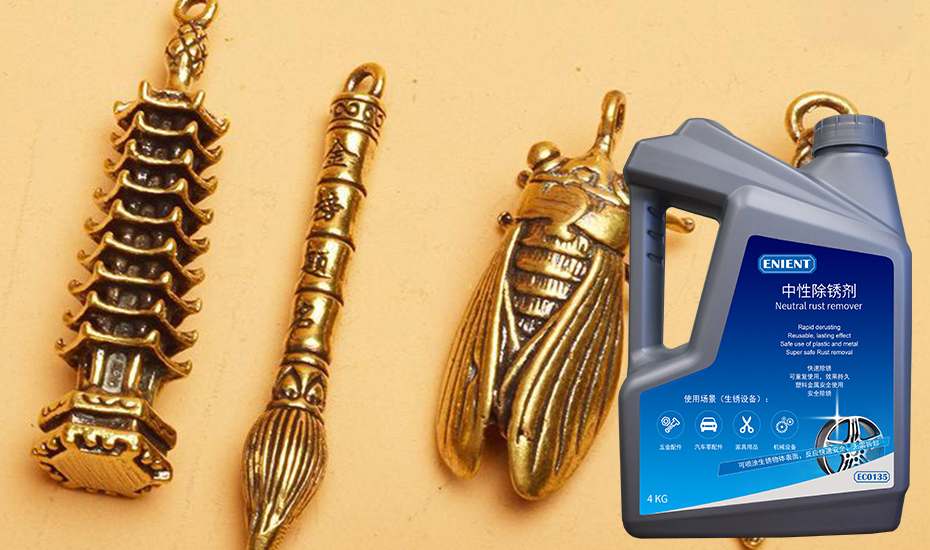 ENIENT:EC0135黃銅除銹劑采用中性溫和的配方,不僅能快速有效去除銹跡,還能恢復(fù)黃銅的光澤。并且表面不會(huì)鈍化。也不會(huì)影響后續(xù)噴漆。