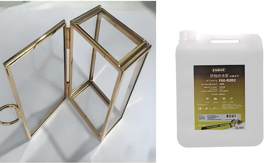 改性樹脂涂層結(jié)合油性納米技術(shù)是一種革新的產(chǎn)品。以ENIENT EGL0202單液免烤型防指紋油為例,噴上自干即可達(dá)到比烘烤更強(qiáng)的性能,并且透明度高,做出來的不銹鋼制品十分高檔。