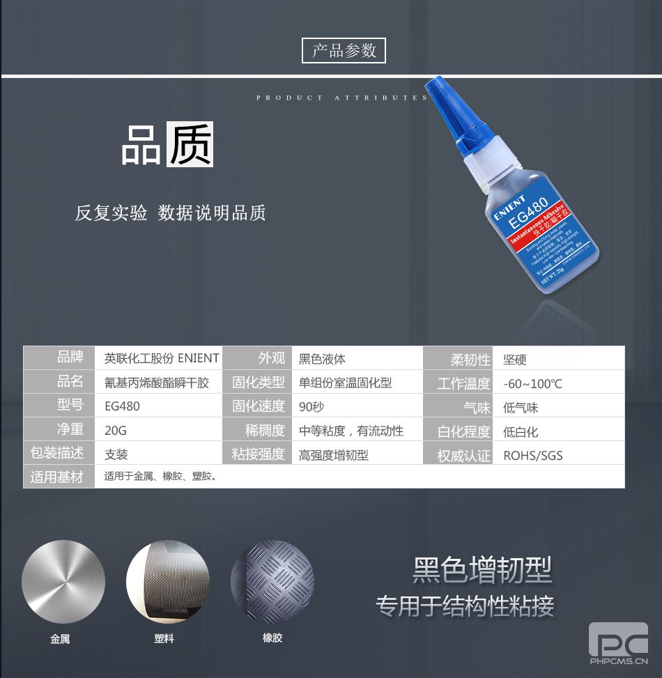 ENIENT EG480快干膠90秒固化金屬橡膠塑膠塑料增強(qiáng)型高強(qiáng)度黑色20G